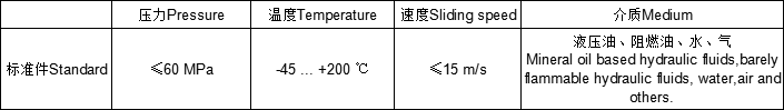 標準材料密封環:填充聚四氟乙烯F-PTFE或聚氨酯PU0形圈:丁腈橡膠NBR或氟橡膠FKM特點-良好的動靜密封性能-抗擠出性好-尺寸穩定,不受溫度影響-不會發生困壓,可多只串聯安裝-對強沖擊壓力有優異的緩沖作用-摩擦力小,無爬行,粘滯現象-耐腐蝕性強-溝槽結構簡單-壽命長-有無潤滑均可工作-安裝簡便