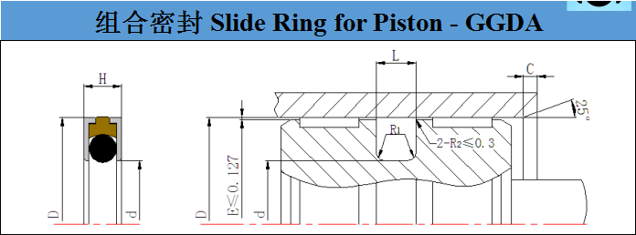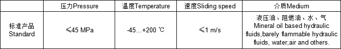 標準材料密封體:填充聚四氟乙烯F-PTFE彈性體:丁腈橡膠NBRL 環:聚甲醛POM或尼龍PA特點-安裝簡易-高耐磨-低摩擦,無粘滑現象